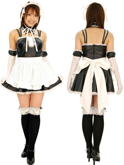 ←左の画像をクリックすると大きくなります。ブラウザのバックボタンでお戻りください。 素材 ワンピース・腕輪 ポリウレタン100%手袋 ナイロン80%ポリウレタン20%その他 ポリエステル100% サイズ他 M(バスト79-87 ウエスト62-66 ヒップFree 着丈75cm)※モデルの身長は160cm、Mサイズ着用です。※靴・靴下はセットに含まれません。 セット内容 ワンピース・腕輪・手袋・エプロン・カチューシャ・付け襟 C013人気アニメコスプレこれが私のご主●様メイド服 人気アニメ「これが私のご主●様」のメイド服♪レース&フリルのかわいさと合皮のセクシーが見事にマッチ!ワンピースと首輪と